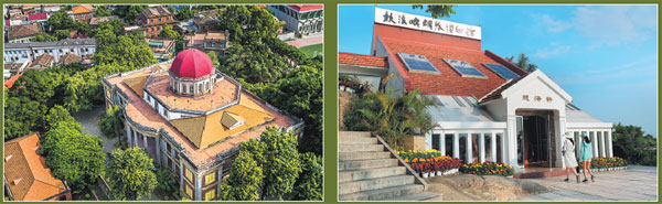 Left: Bagua Building is home to a large collection of pipe organs. Right: A piano museum, with nearly 100 pianos from countries worldwide on exhibit, is situated on Gulangyu Island.