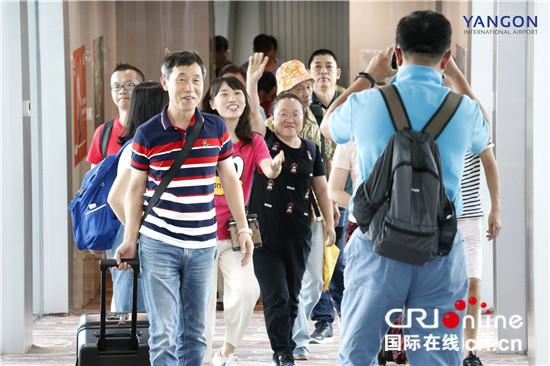 Happy passengers taking the first Xiamen-Rangoon flight arrive in Rangoon on June 22. [Photo/cri.cn]